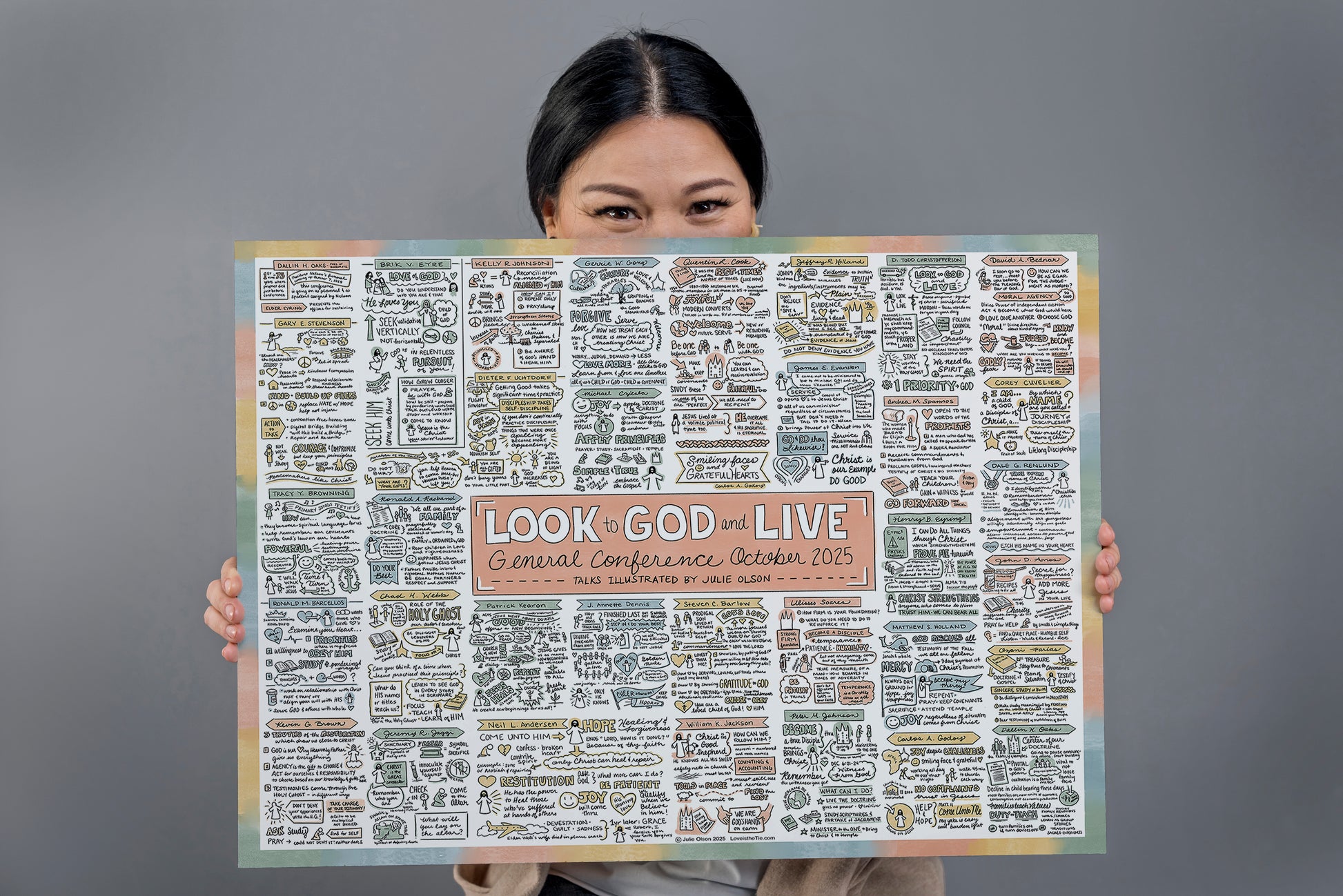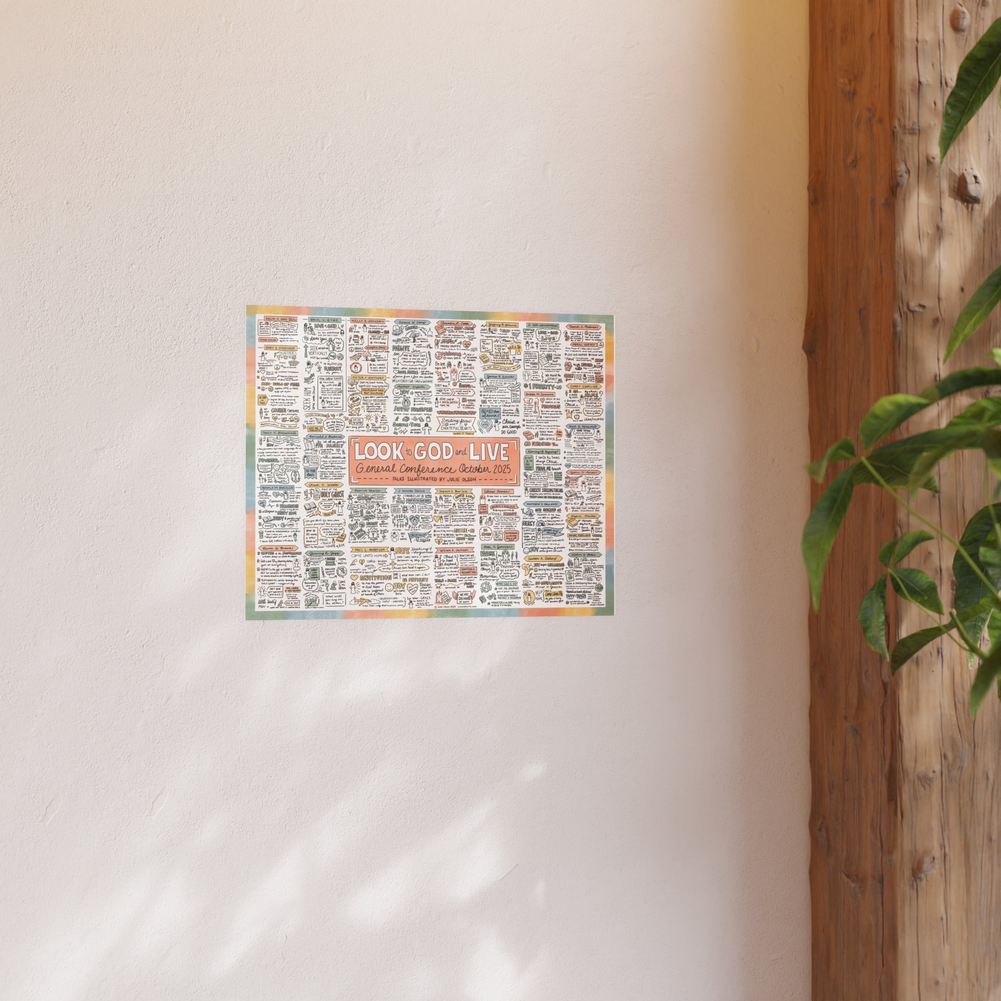 Bring General Conference into your home continually with this 16x20 inch poster illustrating all 34 talks from the October 2025 General Conference sessions. Pick one to study as a Sunday devotional, or refer to the poster to quickly remind yourself who said what. Hang in family rooms, offices, bedrooms, or playrooms to remind yourself or your family what to focus on this year.